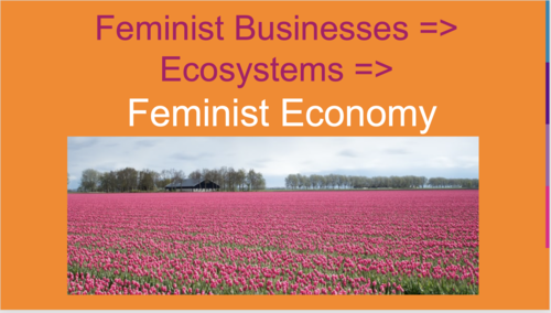 As business people ourselves, what systems should we be working on? What should we be doing with the business tools we have at hand to move towards a feminist economy? We can use the very systems we work in and work with to create feminist businesses. Then we loop these businesses together into feminist business ecosystems, ultimately to create a feminist economy. That’s the work we get to do.