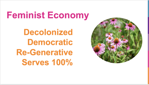 Since we know that this economy is not working for all of us, and especially not working for women and other marginalized people, I propose we shift to a feminist economy.