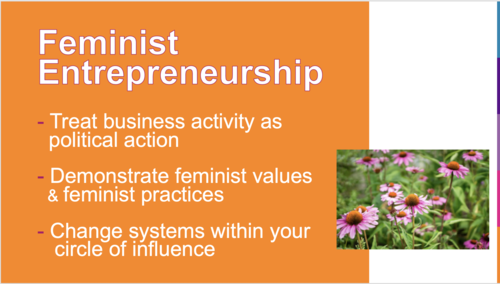 Here in this community of feminist entrepreneurs, we can build feminist businesses, we can fund and found businesses led by women, and we can transform to a feminist economy where we all flourish together.